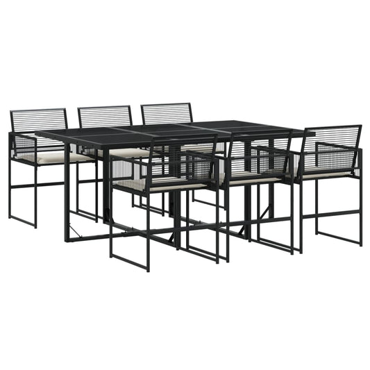 7-tlg. Garten-Essgruppe mit Kissen Schwarz Poly Rattan