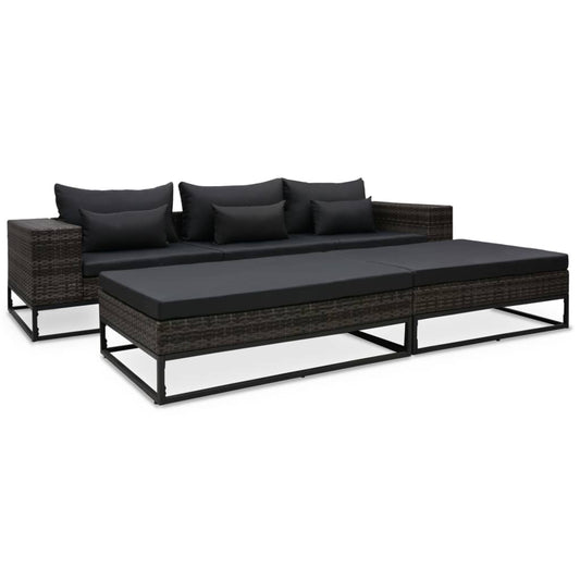 3-tlg. Garten-Lounge-Set mit Polstern Poly Rattan Grau