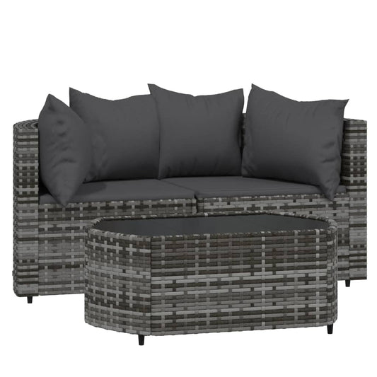 4-tlg. Garten-Lounge-Set mit Kissen Grau Poly Rattan