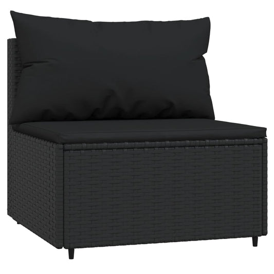 Garten-Mittelsofa mit Kissen Schwarz Poly Rattan