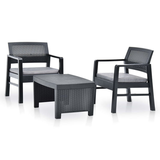 3-tlg. Garten-Lounge-Set Kunststoff Anthrazit