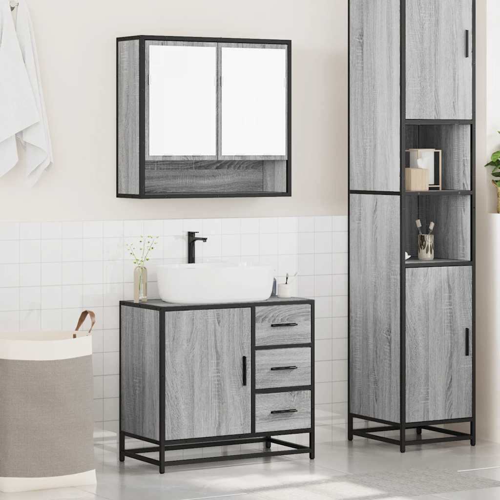 2-tlg. Badmöbel-Set Grau Sonoma Holzwerkstoff
