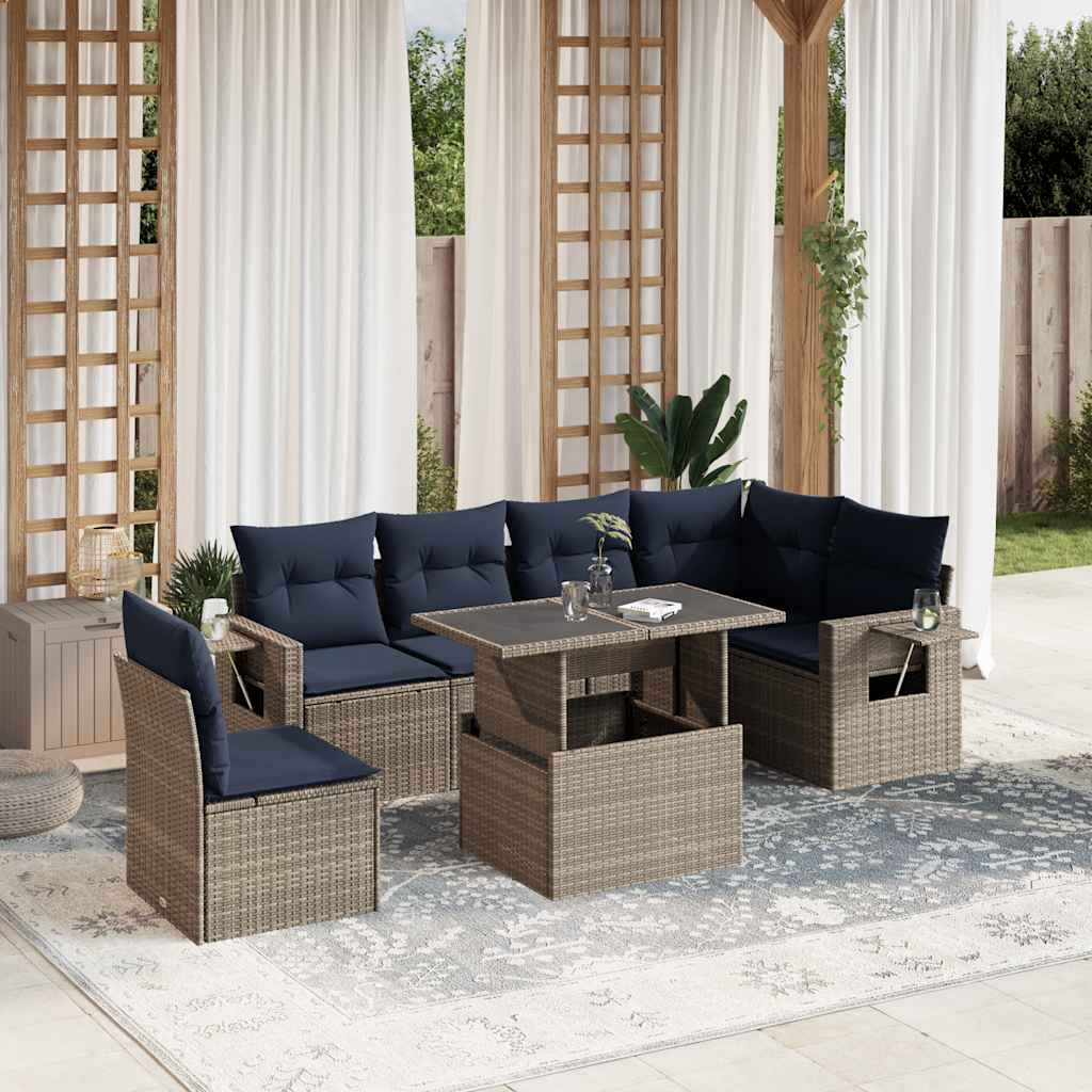 7-teiliges Gartensofa-Set mit Kissen, grau, Polyrattan