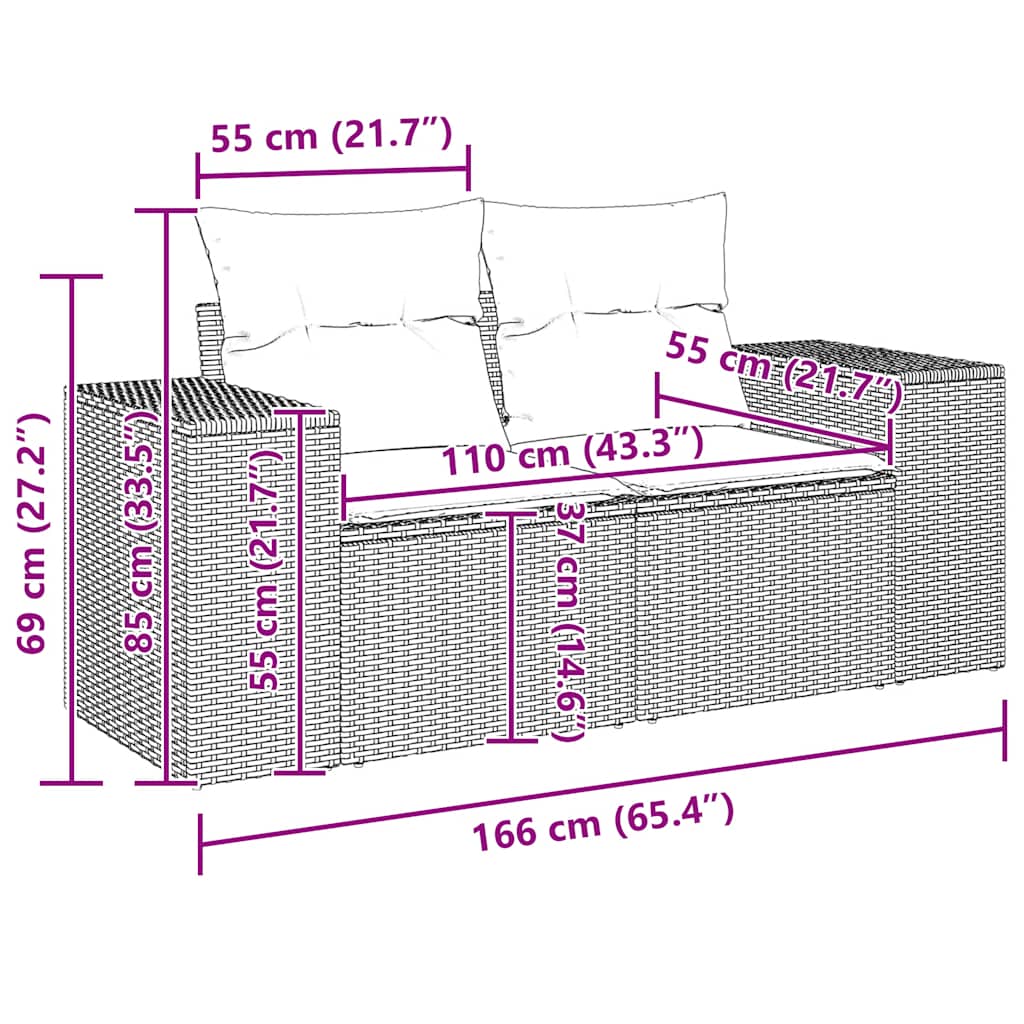 Gartensofa mit Kissen 2-Sitzer Braun Poly Rattan