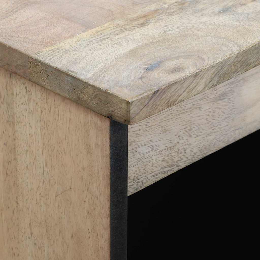 - Material: Massives mangoholz mit eisenrohren und engineered wood