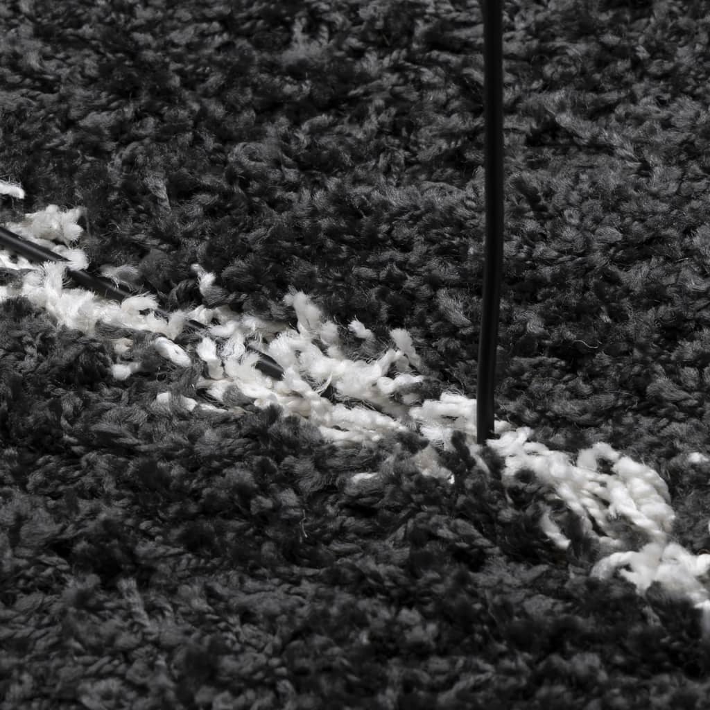 Tæppe Shaggy Deep Pile Modern Sort og Creme 160x160 cm