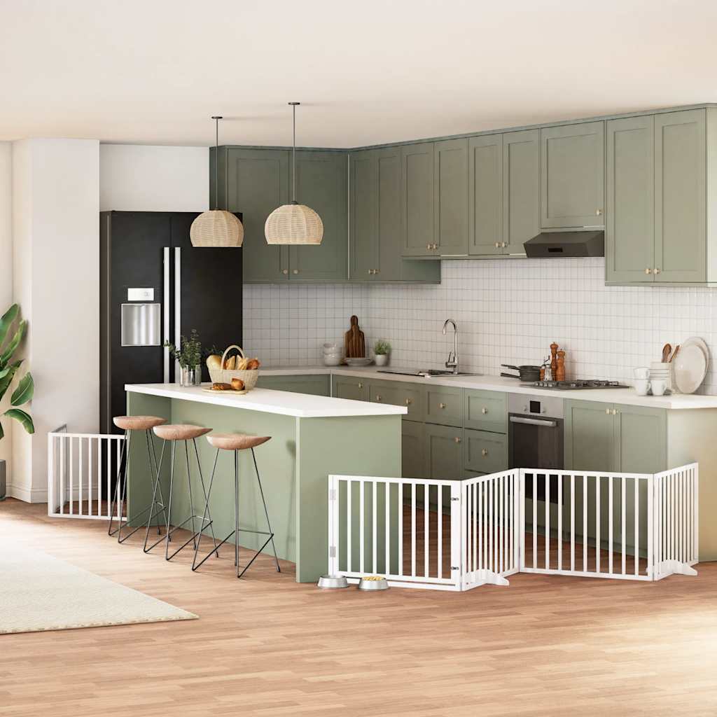 12-tlg. Hundetor mit Tür Faltbar Weiß 960 cm Pappelholz