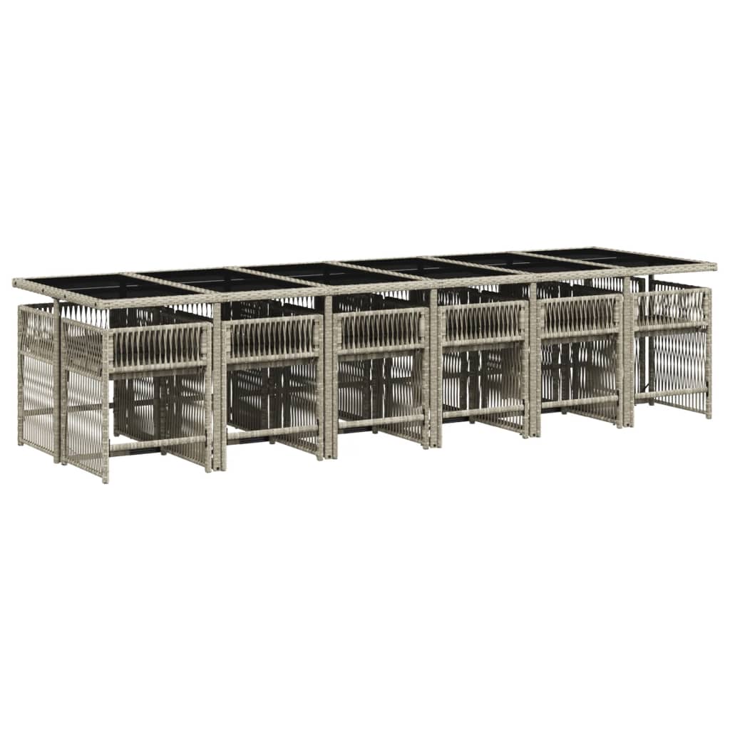 13-tlg. Garten-Essgruppe mit Kissen Hellgrau Poly Rattan