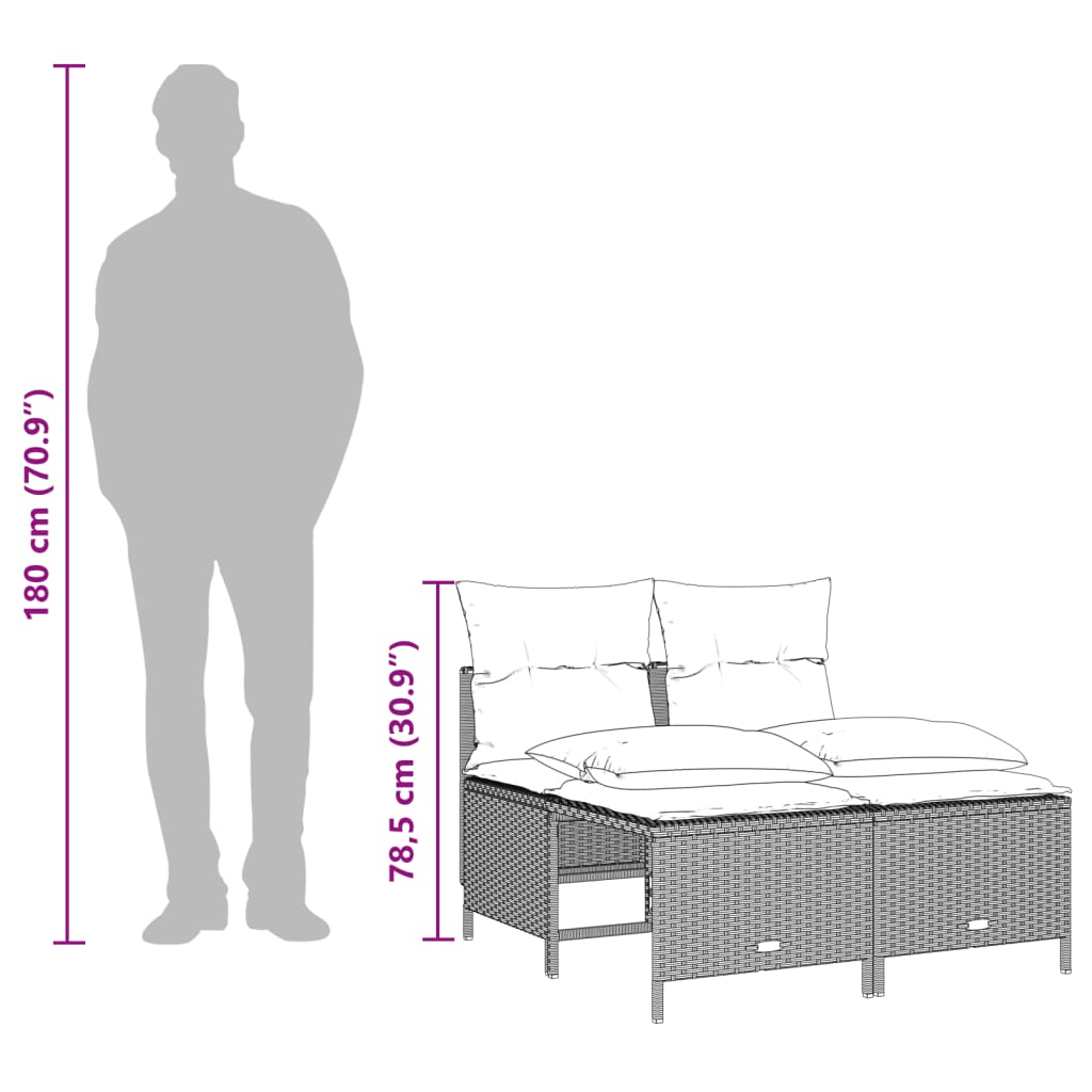 4-tlg. Garten-Sofagarnitur mit Kissen Hellgrau Poly Rattan