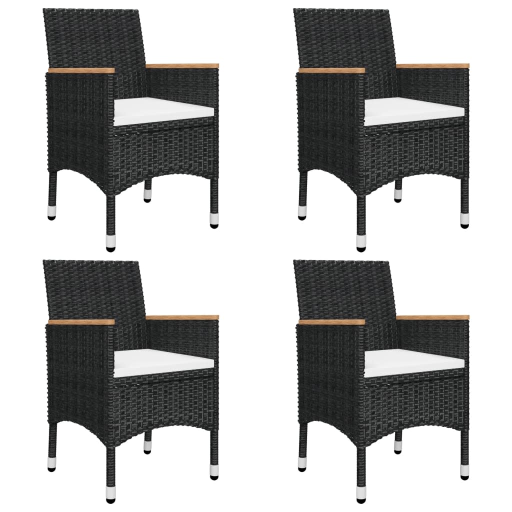 Mit ihrem eleganten und modernen Design ist diese Garten-Essgruppe eine großartige Wahl zum Essen oder Entspannen im Garten. Massives Akazienholz: Akazien-Massivholz ist ein schönes Naturmaterial. Akazienholz ist ein tropisches Hartholz, das dicht, robust und langlebig ist.Hochwertige Sessel: Der robuste Stahlrahmen ist mit wetterfestem, handgeflochtenem PE-Rattan ummantelt, sodass sich diese Gartensessel sehr gut für den Außenbereich eignen.Komfortables Design: Mit geschwungenen Rückenlehnen und Armlehnen versehen, bieten diese Gartenstühle in Rattan-Optik höchsten Komfort.Zusätzlicher Komfort: Die mitgelieferten Sitzkissen bieten zusätzlichen Sitzkomfort. Hinweis:Um die Lebensdauer deiner Gartenmöbel zu verlängern, empfehlen wir dir, sie mit einer wasserdichten Hülle zu schützen.
