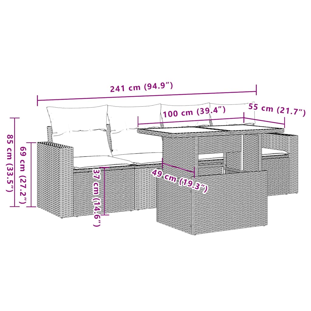 5-tlg. Garten-Sofagarnitur mit Kissen Beige Poly Rattan