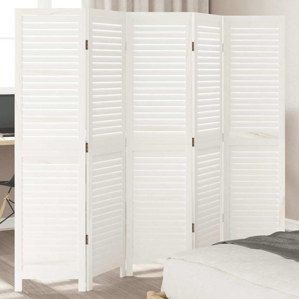 5-tlg. Raumteiler Weiß Massivholz Paulownia