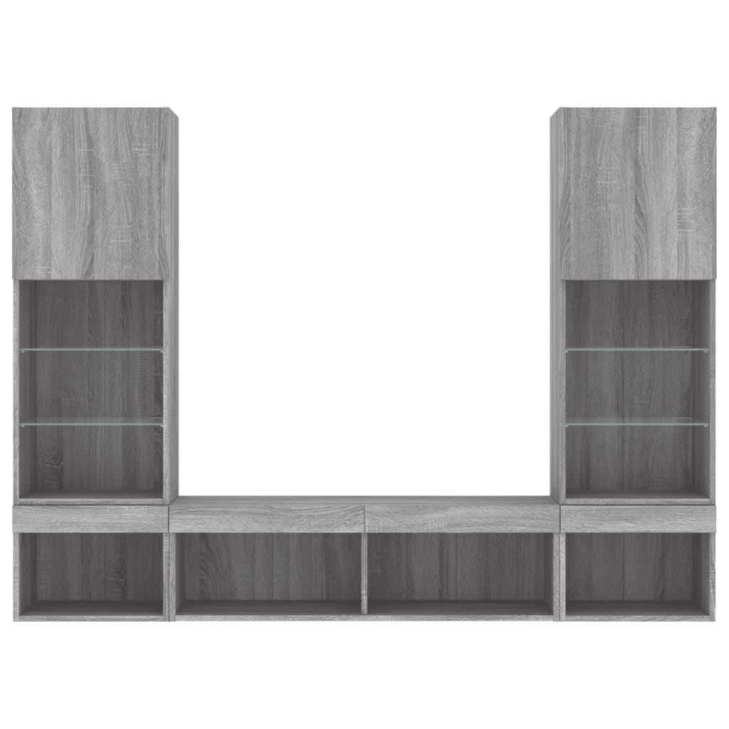 5-tlg. Wohnwand mit LED-Beleuchtung Grau Sonoma Holzwerkstoff