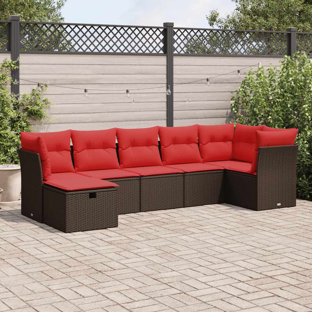 7-tlg. Garten-Sofagarnitur mit Kissen Braun Poly Rattan