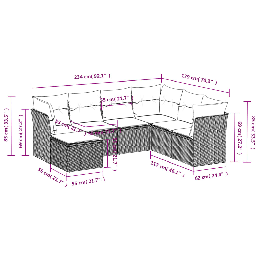 7-tlg. Garten-Sofagarnitur mit Kissen Grau Poly Rattan