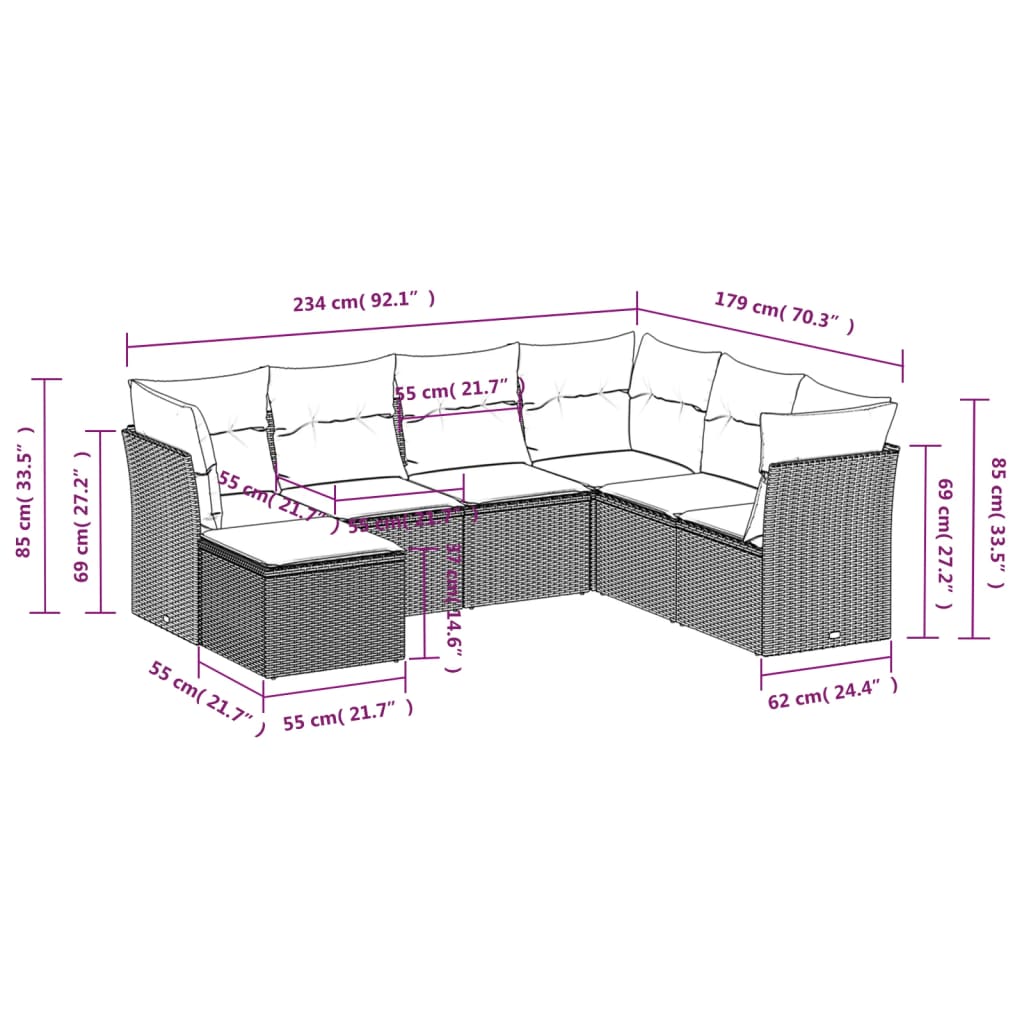7-tlg. Garten-Sofagarnitur mit Kissen Hellgrau Poly Rattan