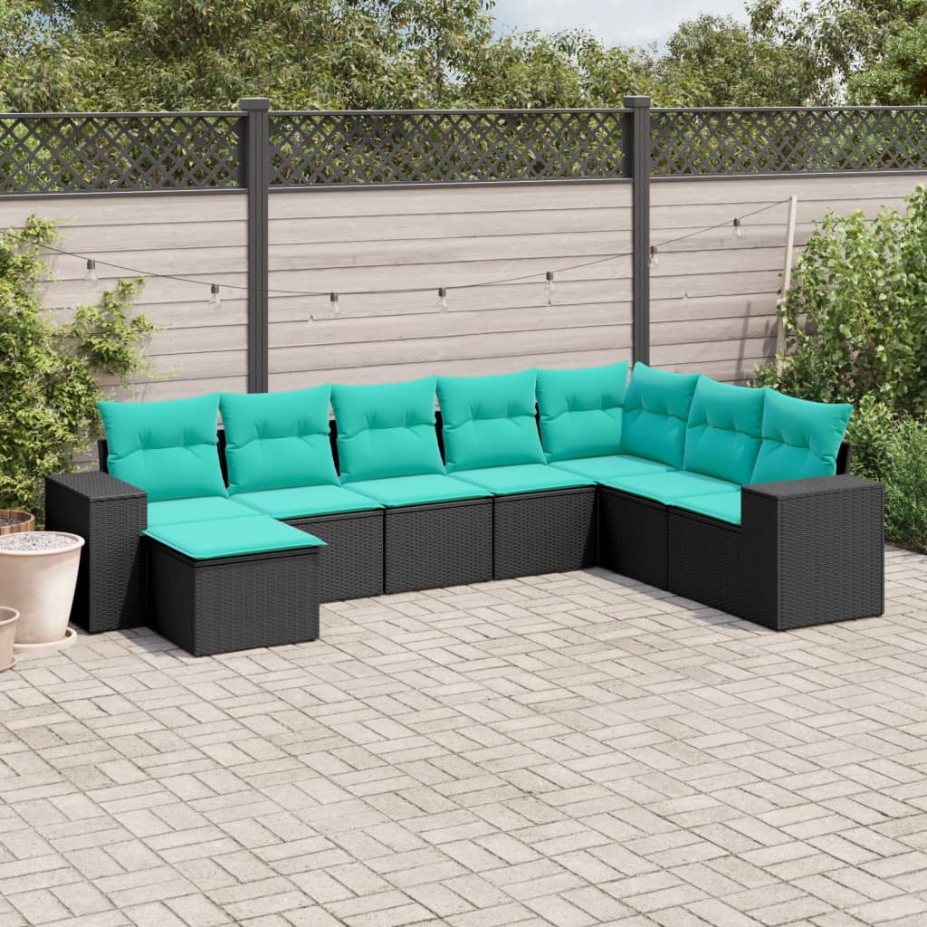 8-teiliges Gartensofa-Set mit Kissen, schwarzes Polyrattan