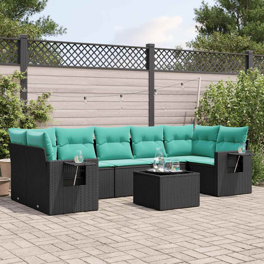 Dieses Gartensofa-Set ist die perfekte Ergänzung für Ihren Garten, Ihre Terrasse oder Ihren Innenhof und bietet einen komfortablen und einladenden Platz zum Plaudern mit Familie und Freunden oder einfach zum Entspannen und Genießen der Natur. Langlebiges Material: PE-Rattan, auch bekannt als Polyrattan, ist ein robustes, pflegeleichtes synthetisches Material, das wie natürliches Rattan aussieht. Es ist leicht, einfach zu reinigen und wird aufgrund seiner Langlebigkeit und Wetterbeständigkeit häufig für Gartenmöbel verwendet.Glastischplatte: Die Tischplatte des Gartentisches besteht aus robustem und langlebigem Hartglas, sodass sie sich leicht mit einem feuchten Tuch reinigen lässt und Ihrem Außenbereich einen Hauch von Eleganz verleiht.Praktischer Beistelltisch: Dieses Gartenmöbel verfügt über klappbare Beistelltische mit Gasdruckfeder an den Armlehnen, die praktische Ablageflächen für wichtige Dinge bieten. Bequemes Sitzerlebnis: Diese Gartenmöbel mit dick gepolsterten Kissen bieten ein bequemes Sitzerlebnis.Modulares Design: Dieses Gartenmöbel-Set ist modular aufgebaut und daher völlig flexibel und leicht zu bewegen, sodass Sie Ihre Gartenmöbel individuell zusammenstellen können. Gut zu wissen:Damit Ihre Gartenmöbel lange schön bleiben, empfehlen wir Ihnen, sie mit einer wasserdichten Abdeckung zu schützen.