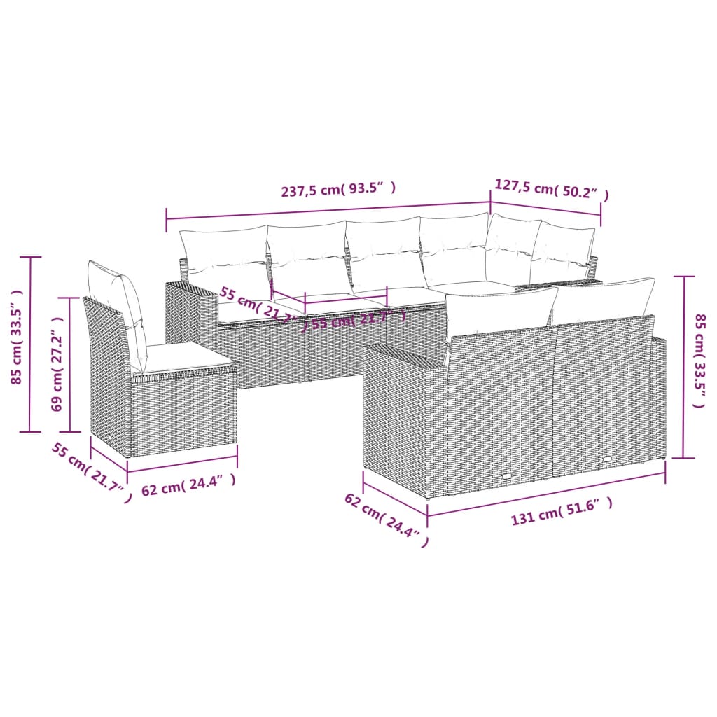 8-tlg. Garten-Sofagarnitur mit Kissen Beige Poly Rattan