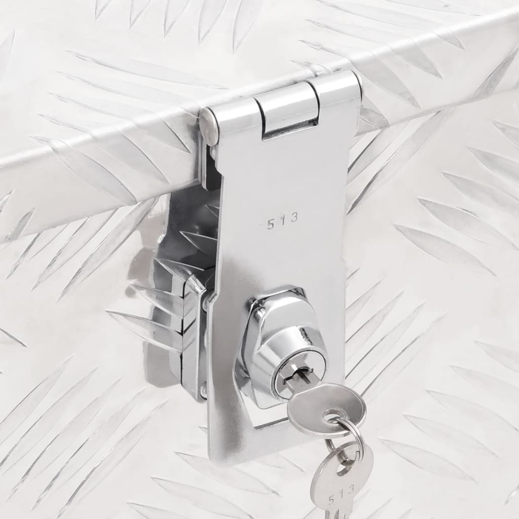 Diese Allzweck-Aufbewahrungsbox aus Aluminium ist die ideale Wahl für Verpackung, Lagerung und Transport. Rostfreies Aluminium: Die Box besteht aus gewelltem Aluminiumblech und ist dadurch rostfrei und langlebig.Geräumiger Innenraum: Der Werkzeugkasten verfügt über einen geräumigen Innenraum zur Aufbewahrung von Werkzeugen, Zubehör und anderen Geräten und Werkzeugen.Verschlusssystem: Der Aufbewahrungskoffer ist mit einem Verschlusssystem ausgestattet, was für zusätzliche Sicherheit sorgt.Praktischer Griff: Dank des praktischen Griffs lässt sich die Box bequem überall mitnehmen.Kompaktes Design: Dank des leichten und kompakten Designs kannst du die Aluminiumbox in deinem Fahrzeug und in der Garage aufbewahren oder auf deinen nächsten Campingausflug mitnehmen.