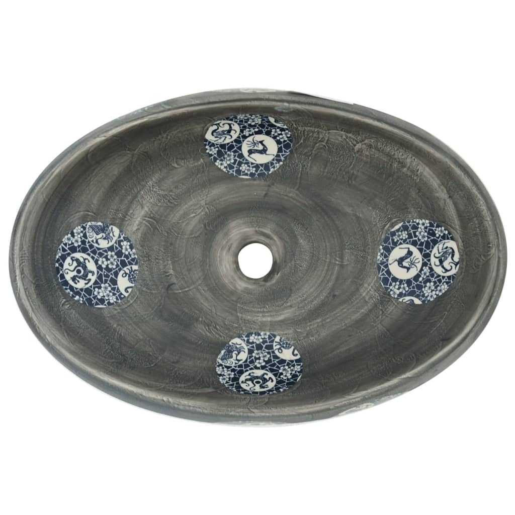 Aufsatzwaschbecken Grau Oval 59x40x15 cm Keramik