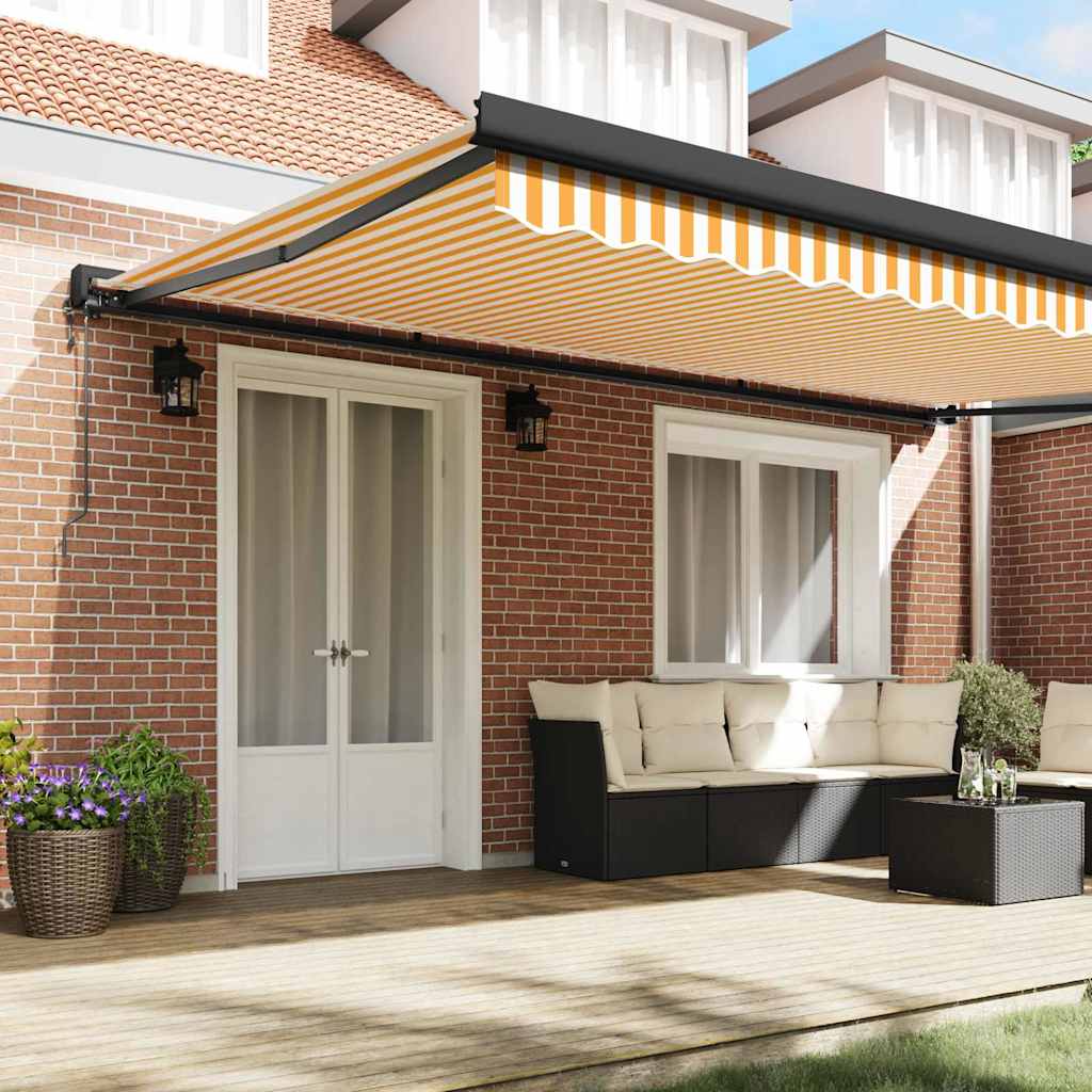 Einziehbare Markise Orange und Weiß 500 × 300 cm Stoff, Metall