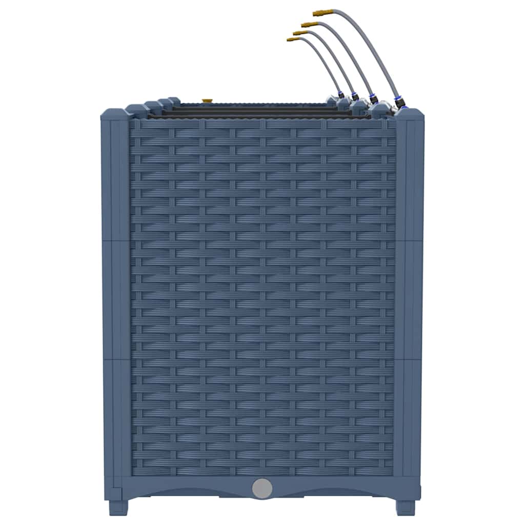 Dieser Gartenpflanzer mit Bewässerung ist eine moderne Lösung, die für Outdoor-Enthusiasten entwickelt wurde. Seine schlanke rechteckige Form, kombiniert mit einem strukturierten Geflechtmuster, verleiht deinem Garten oder Terrassenbereich einen zeitgenössischen Touch. Ideal für das Pflanzen einer Vielzahl von Flora, bietet dieser Pflanzer eine solide, ästhetisch ansprechende Grundlage für deine gärtnerischen Ambitionen. Er fügt sich nahtlos in jede Garten-Dekoration ein und bietet eine funktionale, aber stilvolle Option für Hobbygärtner. Der Pflanzer ist perfekt für alle, die ihren Außenbereich mit üppigem Grün bereichern wollen, unterstützt durch ein innovatives Bewässerungssystem, das ein gesundes Pflanzenwachstum fördert. Sein erhöhtes Design verleiht eine anspruchsvolle Note und sorgt gleichzeitig für praktische Verwendung, was dieses Stück zu einer unverzichtbaren Ergänzung für Gartenliebhaber macht. Materialkonstruktion: Der Gartenpflanzer besteht aus UV-beständigem Stahl, der Haltbarkeit und Widerstandsfähigkeit gegen Wetterveränderungen gewährleistet. Diese Materialwahl bietet robusten Schutz, der starkem Sonnenlichteinfluss und saisonalen Veränderungen angemessen widersteht, sodass deine Pflanzen das ganze Jahr über ohne Kompromisse beim strukturellen Integrität gedeihen. Eingebautes Bewässerungssystem: Ausgestattet mit einem fortschrittlichen Bewässerungssystem, nimmt dieser Gartenpflanzer das Rätselraten beim Gießen. Durch das nutzen von eingebauten Kanälen verteilt er Wasser effizient direkt zu den Pflanzenwurzeln, sodass diese ausreichende Feuchtigkeit erhalten, während der Wasserverbrauch reduziert wird und gesünderes Wachstum gefördert wird. Modernes Design: Mit einem schicken Geflechtmuster zeigt dieser Pflanzer elegante Einfachheit, die mit der modernen Ästhetik übereinstimmt. Seine nicht reflektierende matte Oberfläche verleiht einen verfeinerten Touch, sodass er sich nahtlos in verschiedene Außenbereiche integriert, während er mit seinen klaren, unaufdringlichen Linien den zeitgenössischen Stil verkörpert. Vielseitige Nutzung: Ideal für den Außeneinsatz, dient dieser Pflanzer sowohl dekorativen als auch praktischen Zwecken. Sein geräumiges Inneres bietet Platz für eine Vielzahl von Pflanzenarten, von üppigen Farnen bis hin zu lebhaften Blumen, was ihn für saisonale Übergänge oder den ganzjährigen Gebrauch geeignet macht und ein optimales Pflanzerlebnis für Hobbyisten und erfahrene Gärtner bietet. Pflege & Wartung: Um sein makelloses Erscheinungsbild zu bewahren, stelle diesen Pflanzer an einen stabilen Ort und vermeide direkte Sonneneinstrahlung über längere Zeiträume. Reinige regelmäßig mit einem trockenen Tuch und achte darauf, dass die Verbindungen während der Montage gesichert sind, um Stabilität und ästhetischen Wert über die Zeit zu gewährleisten.