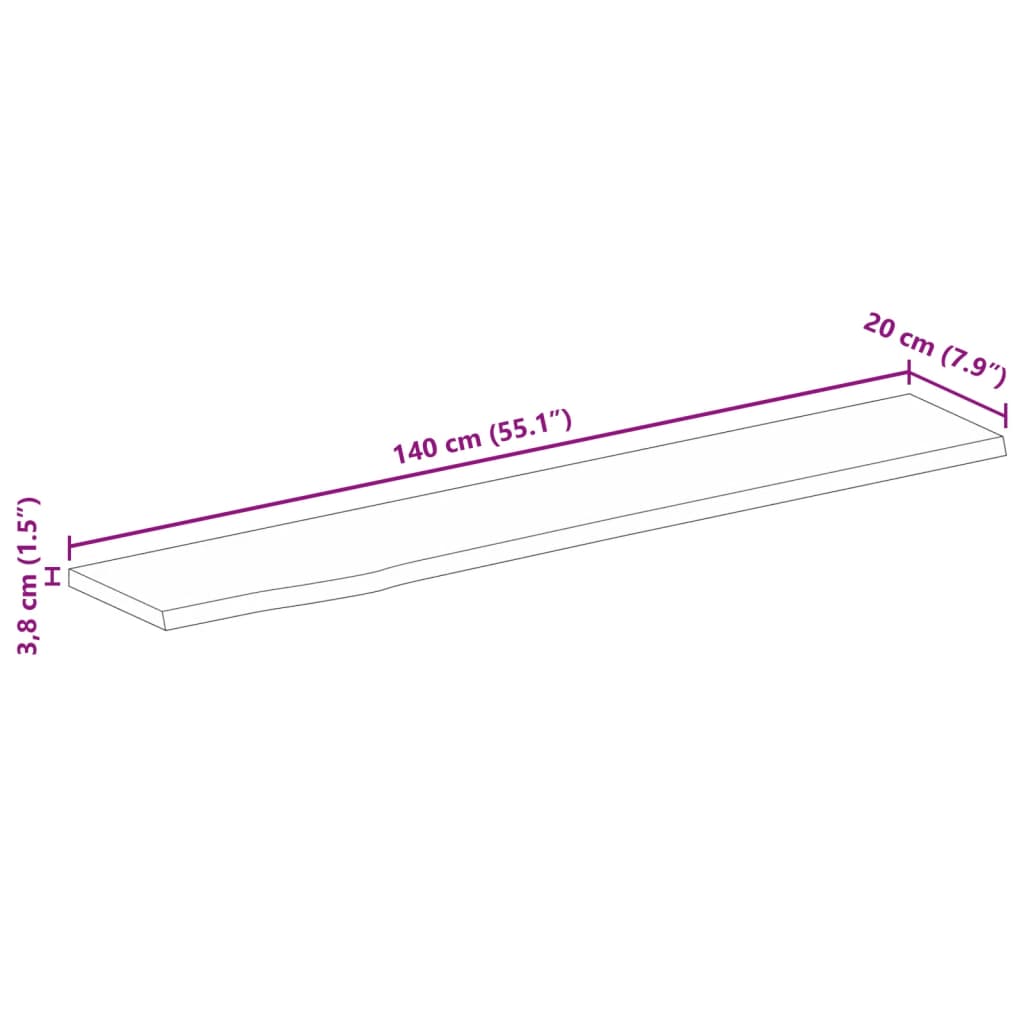Tischplatte mit Baumkante 140x20x3,8 cm Massivholz Mango