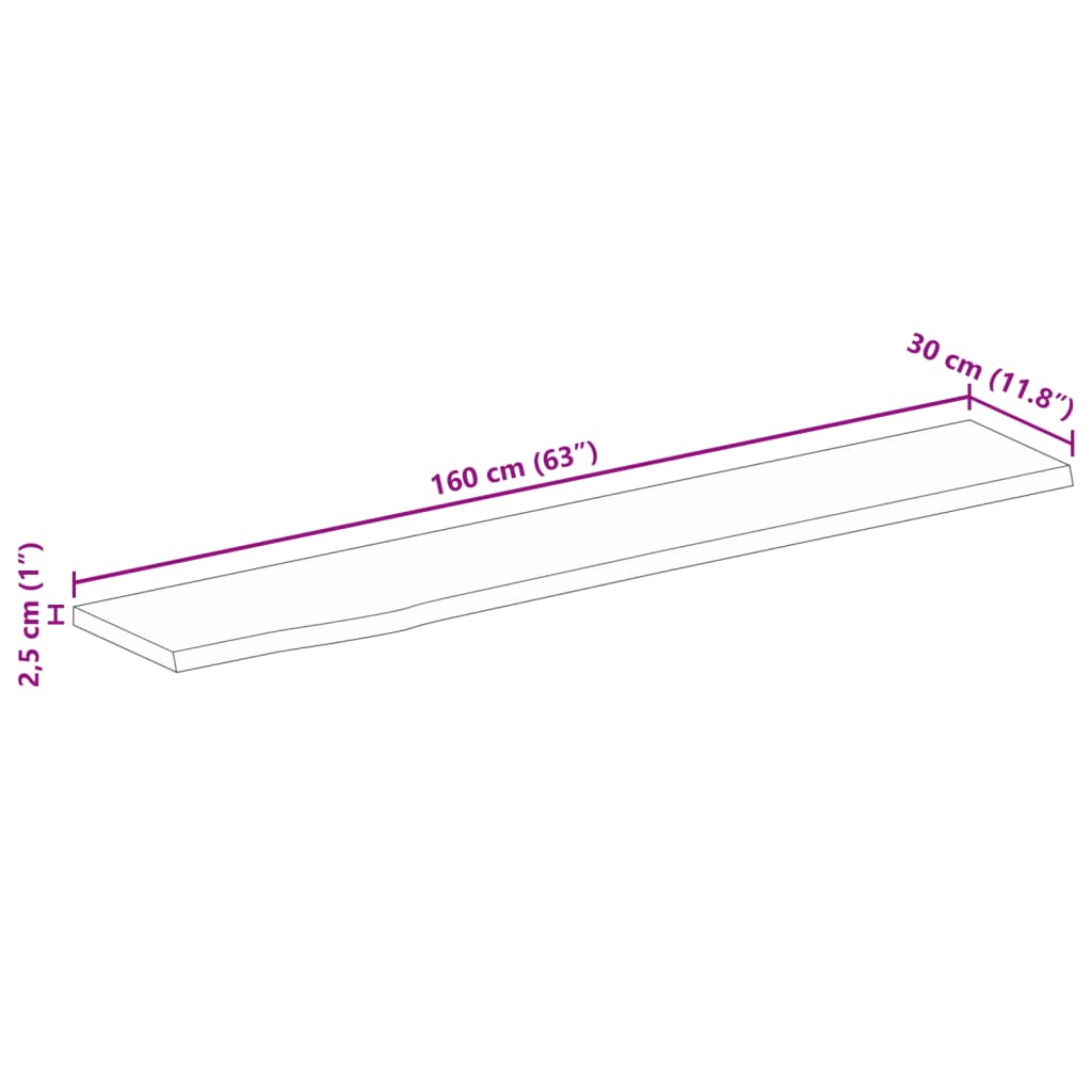 Tischplatte mit Baumkante 160x30x2,5 cm Massivholz Mango