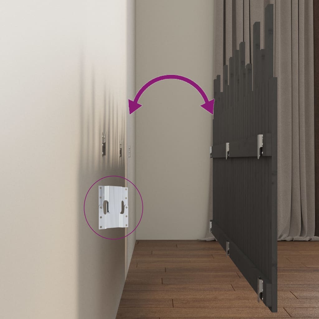 Wand-Kopfteil Grau 204x3x80 cm Massivholz Kiefer