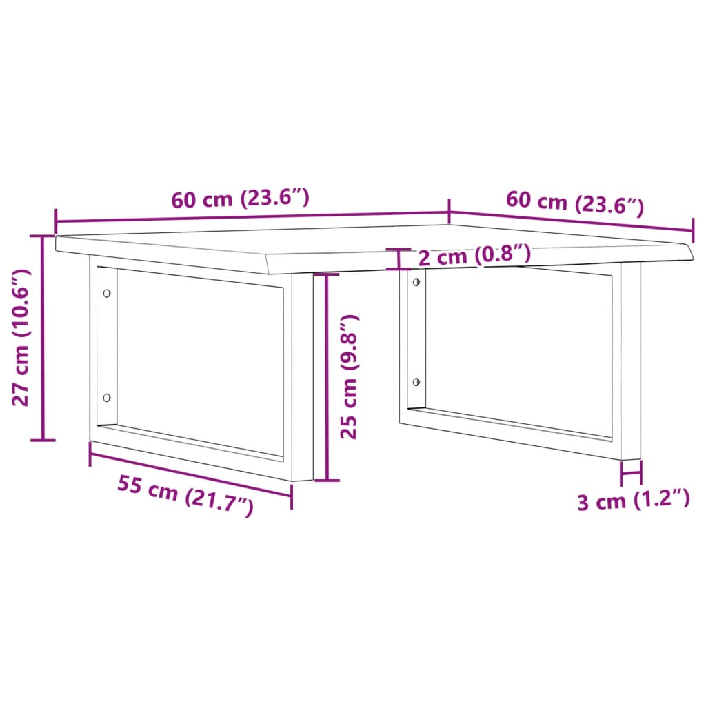 Das Regal lässt sich sicher an der Wand befestigen und bietet eine elegante und platzsparende Lösung für dein Badezimmer. Robust und langlebig: Diese Waschtisch-Platte hat Stahlhalterungen und eine Eichenholz-Platte, wodurch sie robust, stabil und langlebig ist.Platzsparend: Das Schweberegal bietet reichlich Platz für Cremes und verschiedene Kleinigkeiten. Dank der rechteckigen Form der Halterungen kannst du auch Handtücher oder andere Sachen darauf platzsparend aufhängen.Einfache Verwendung: Die Holzplatte ist nicht vorgebohrt, sodass dein Waschbecken je nach Bedarf links, rechts oder in der Mitte angebracht werden kann. Dank der vorgebohrten Löcher in der Halterung lässt sich die Ablage am Waschtisch oder an der Wand mühelos befestigen.Vielseitig einsetzbar: Dank ihres modernen Designs schafft die Ablage zusätzlichen Stauraum und fügt sich harmonisch in die unterschiedlichsten Einrichtungen ein. Gut zu wissen:Die Schrauben sind nicht im Lieferumfang enthalten. Du kannst die Schrauben anhand von den folgenden Informationen separat erwerben.Wandbefestigung: 2 x M8-Dehnschraube pro HalterungHolzplatte: 2 x M5x18-Schraube (T=2) oder 2 x M5x20-Schraube (T=2,5/4 cm) pro HalterungAls Naturprodukt kann Holz Aststellen und Unebenheiten aufweisen, die wir mit schwarzer Füllung ausfüllen, um ein glattes Aussehen zu gewährleisten.