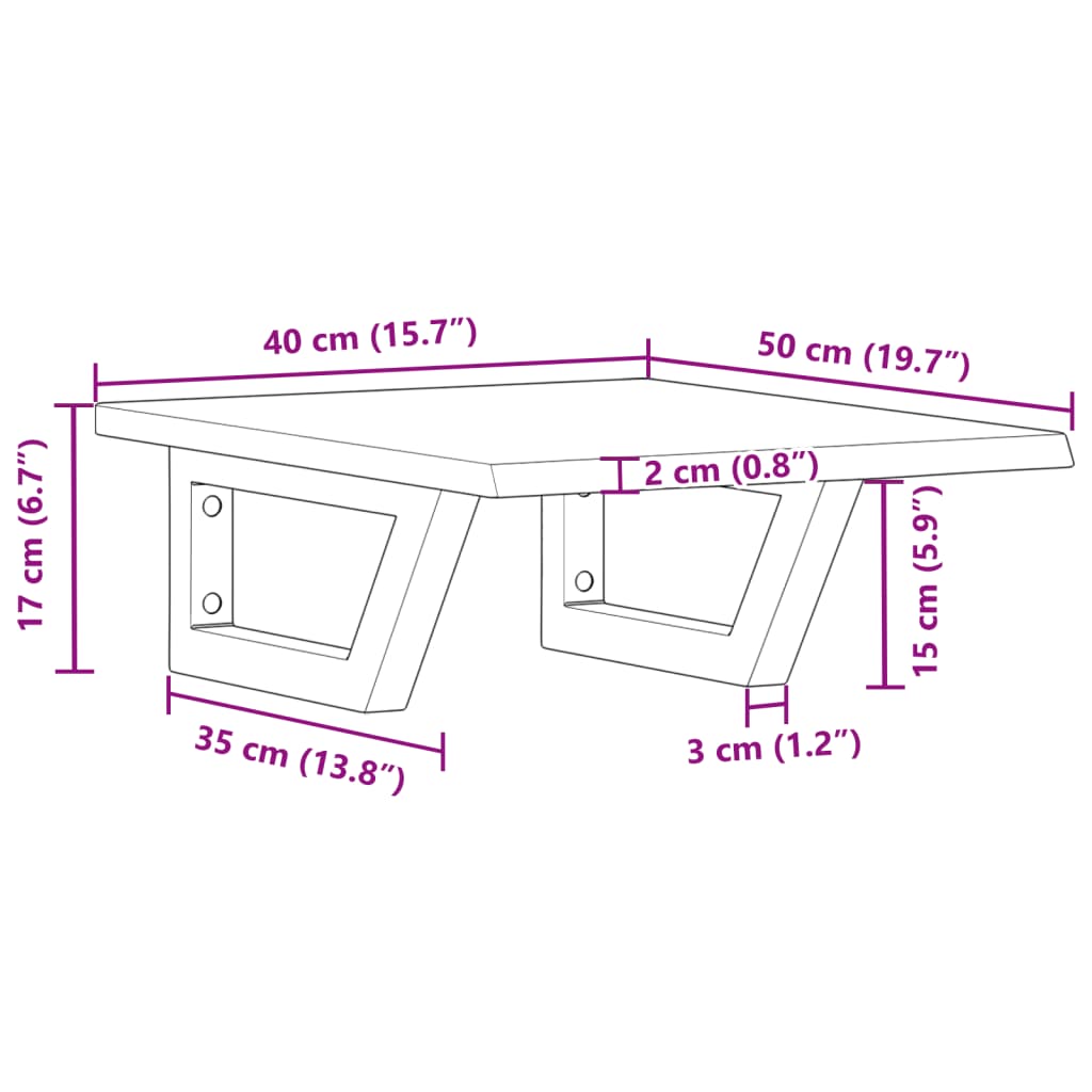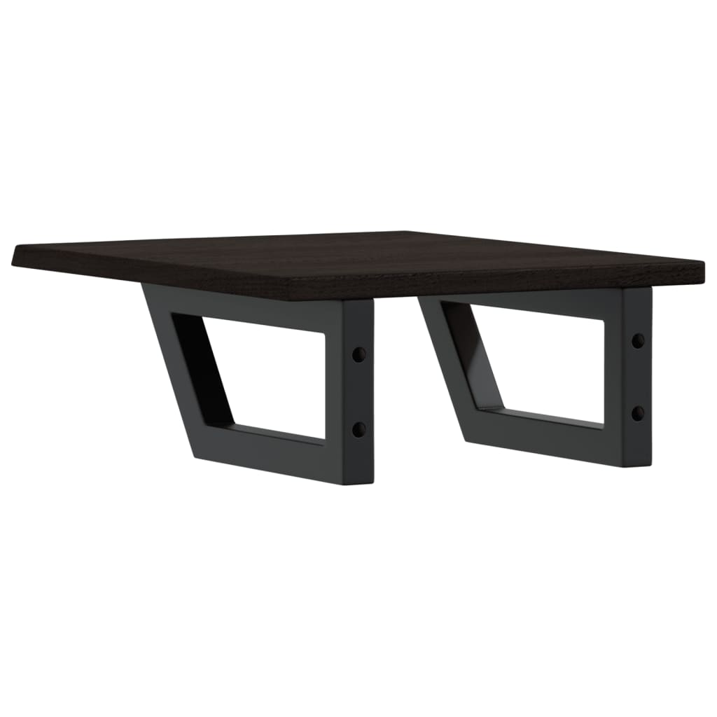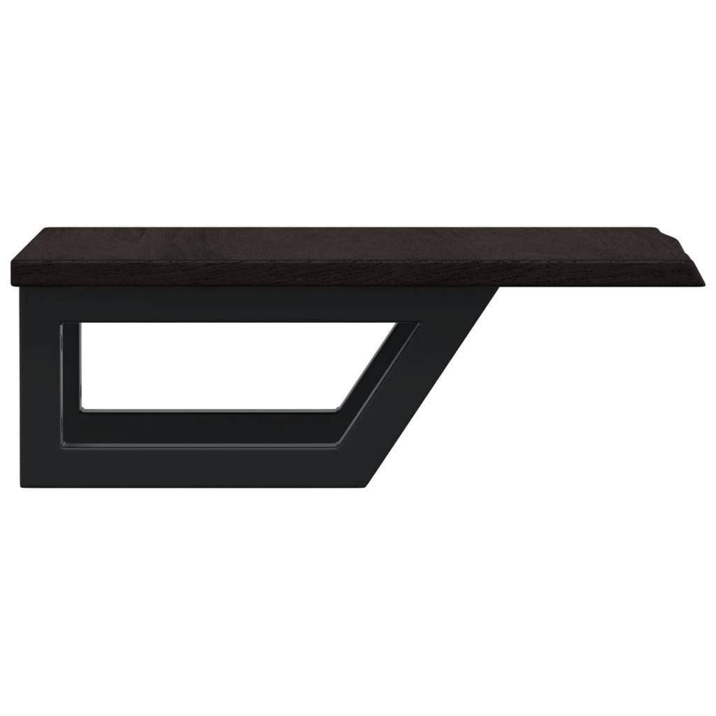 Das Regal lässt sich sicher an der Wand befestigen und bietet eine elegante und platzsparende Lösung für dein Badezimmer. Robust und langlebig: Diese Waschtisch-Platte hat Stahlhalterungen und eine Eichenholz-Platte, wodurch sie robust, stabil und langlebig ist.Platzsparend: Das Schweberegal bietet reichlich Platz für Cremes und Kleinigkeiten. Dank der Trapezform der Halterungen lassen sich auch Handtücher oder andere Sachen platzsparend darauf aufhängen.Einfache Verwendung: Die Holzplatte ist nicht vorgebohrt, sodass dein Waschbecken je nach Bedarf links, rechts oder in der Mitte angebracht werden kann. Dank der vorgebohrten Löcher in der Halterung lässt sich die Ablage am Waschtisch oder an der Wand mühelos befestigen.Vielseitig einsetzbar: Dank ihres modernen Designs schafft die Ablage zusätzlichen Stauraum und fügt sich harmonisch in die unterschiedlichsten Einrichtungen ein. Gut zu wissen:Die Schrauben sind nicht im Lieferumfang enthalten. Du kannst die Schrauben anhand von den folgenden Informationen separat erwerben.Wandbefestigung: 2 x M8-Dehnschraube pro HalterungHolzplatte: 2 x M5x18-Schraube (T=2) oder 2 x M5x20-Schraube (T=2,5/4 cm) pro HalterungAls Naturprodukt kann Holz Aststellen und Unebenheiten aufweisen, die wir mit schwarzer Füllung ausfüllen, um ein glattes Aussehen zu gewährleisten.