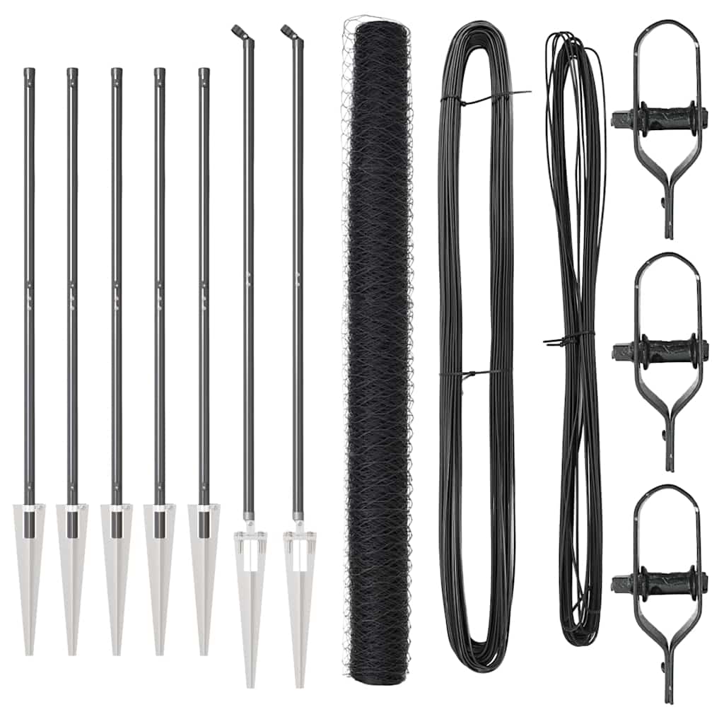 Zaun mit Pfosten Grau 1,6 x 10 m PVC-beschichteter Stahl