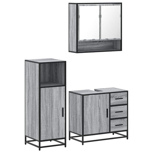 3-tlg. Badmöbel-Set Grau Sonoma Holzwerkstoff