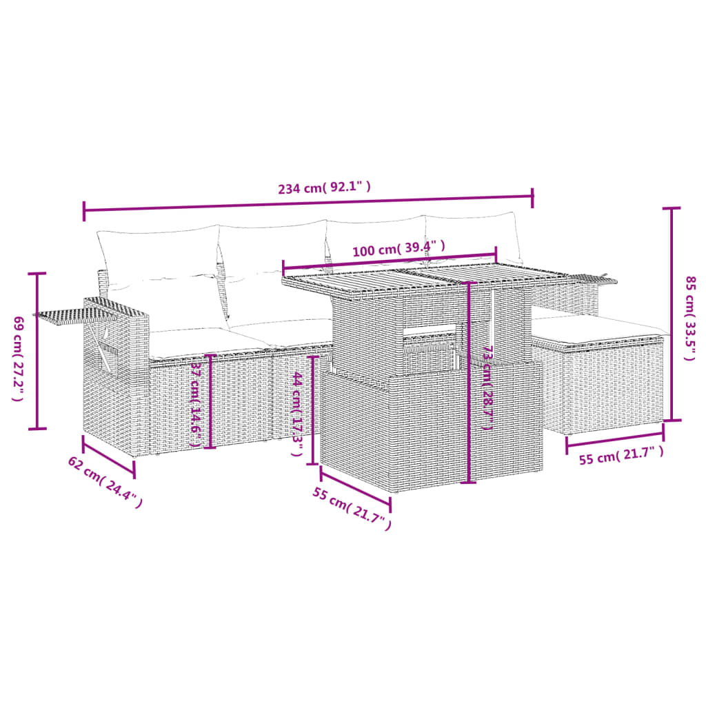 6-tlg. Garten-Sofagarnitur mit Kissen Schwarz Poly Rattan