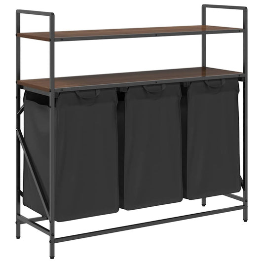 Wäschekorb 3 Fächer mit Regalen Schwarze Eiche