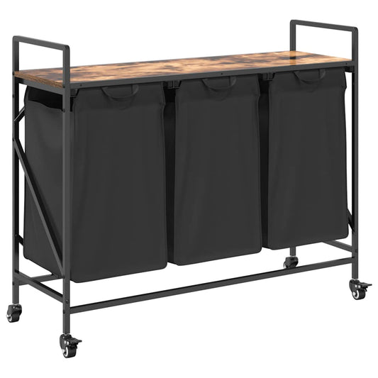 Wäschekorb 3 Fächer mit Rollen Sonoma Eiche