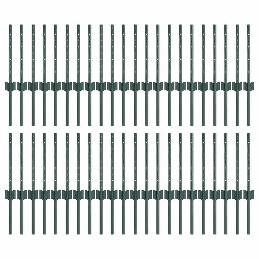 Zaunpfosten 44 pcs Grün 100 cm Stahl