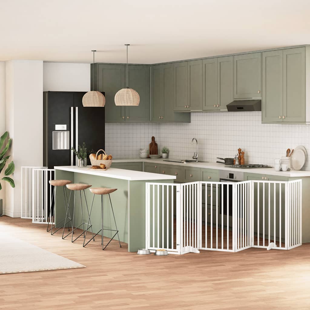 Mit diesem Hundetor kannst du dein Haustier in einem von dir bestimmten Aktivitätsbereich halten, um für dessen Sicherheit zu sorgen und nicht gestört zu werden. Langlebiges Material: Das Hundegitter besteht aus Pappelholz mit Lackierung auf Wasserbasis, was es nicht nur haltbar und langlebig macht, sondern auch eine einfache Reinigung ermöglicht. Benutzerfreundlich: Das Hundetor lässt sich ohne Bohren anbringen, sodass es nach der Demontage keine Schäden in deinem Zuhause hinterlässt. Du kannst das Hundegitter auch komplett zusammenfalten, um den Transport zu erleichtern und es platzsparend in einem Schrank oder an einem anderen Ort zu verstauen. Praktisches Design: Das Hundegitter verfügt über zwei stabile Stützbeine, die für Stabilität sorgen und einfache Anpassungen ermöglichen. Darüber hinaus ist es auch mit einer abschließbaren Tür ausgestattet, die sowohl dir als auch deinen Haustieren mehr Sicherheit und Bequemlichkeit bietet. Vielseitig einsetzbar: Dieses Hundegitter verhindert effektiv, dass deine Haustiere darüber springen und durchkommen. Daher eignet es sich perfekt, um deine Haustiere im Wohnzimmer, in der Küche, auf der Treppe und im Haus sicher zu halten.