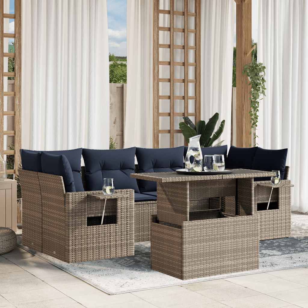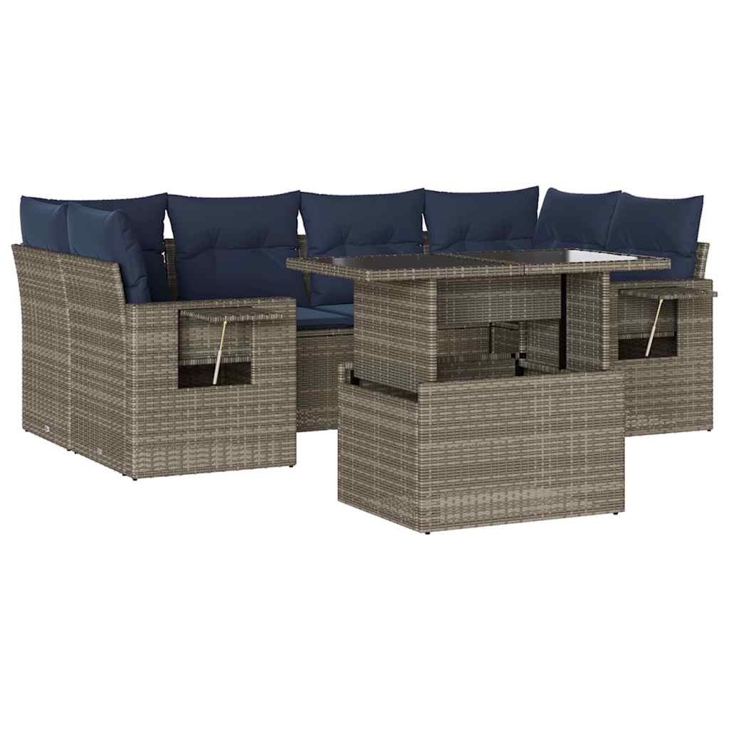 7-teiliges Gartensofa-Set mit Kissen, grau, Polyrattan