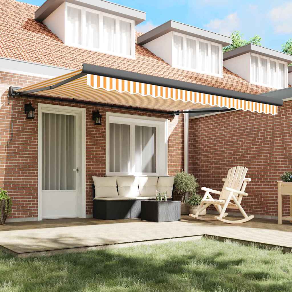 Einziehbare Markise Gelb und weiß 400 × 300 cm Stoff, Metall