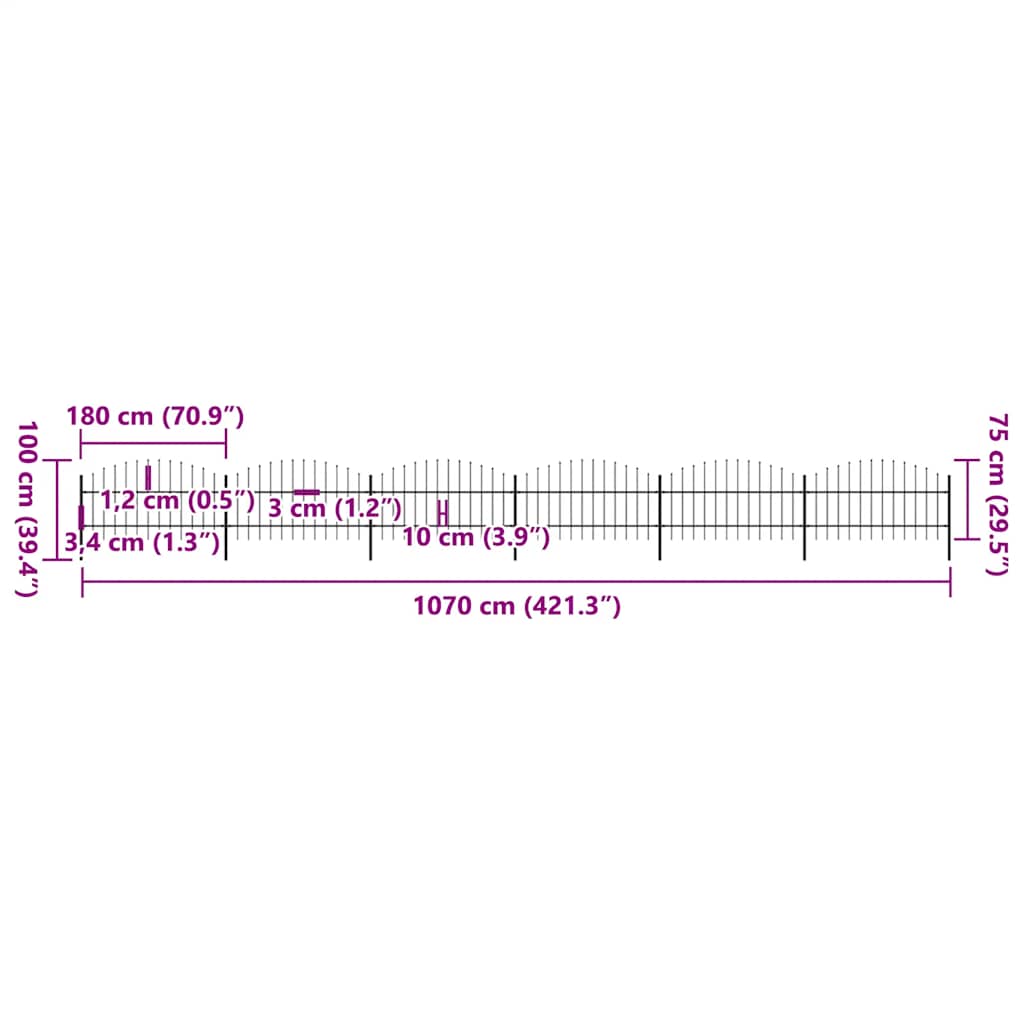 Gartenzaun mit Speerspitze Stahl 1070 x 100 cm Schwarz