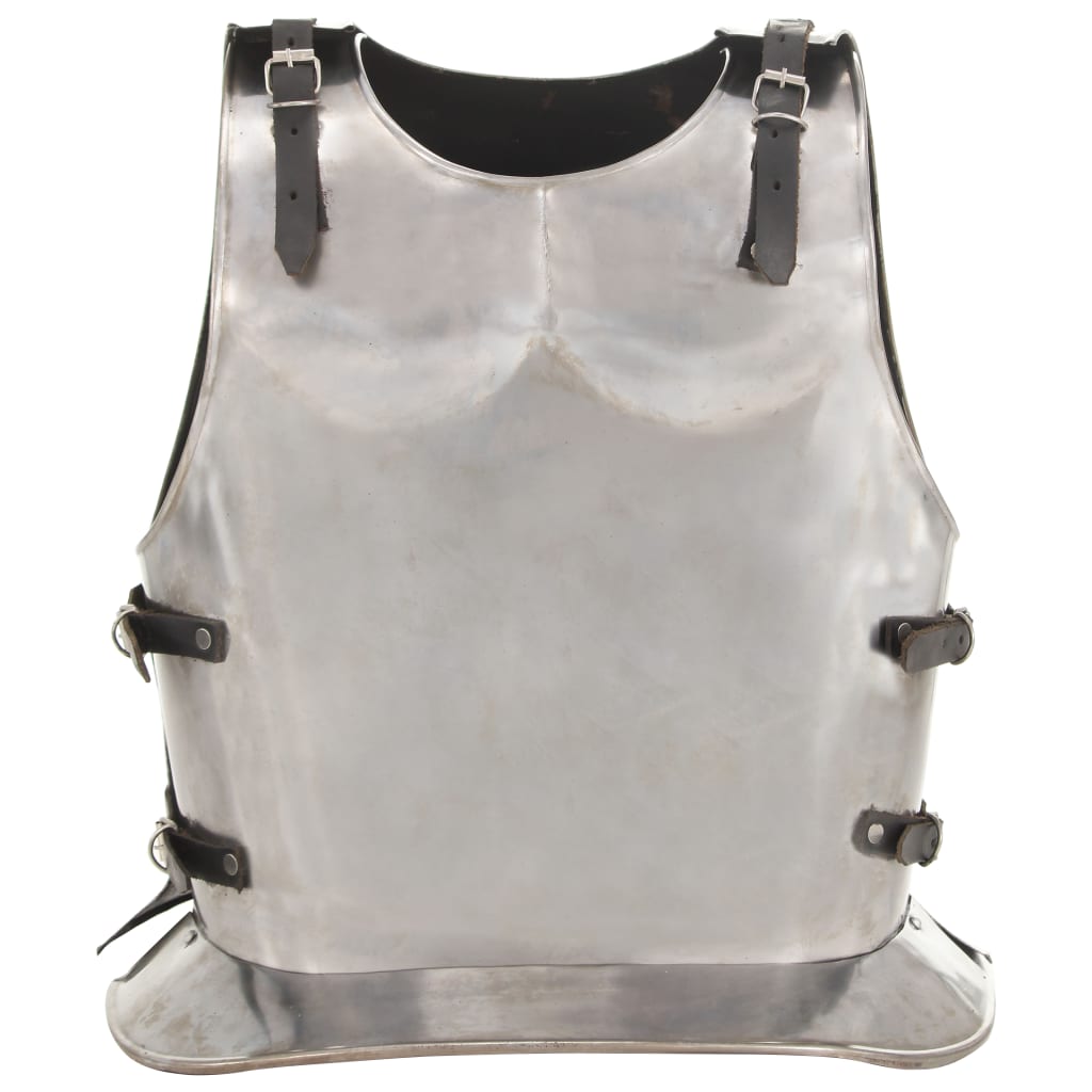 Dieser Brustpanzer in Antik-Optik ist perfekt für LARP (Live-Action-Rollenspiel), Cosplay, Partys mit historischem Thema, Halloween-Party, Theaterrequisiten und historische Nachstellungen (reenactment) und würde sich ebenfalls gut als Ausstellungsstück machen. Dieser Kürass ist eine exakte Nachbildung eines originalen mittelalterlichen Ritterkürasses, der sowohl die Brust als auch den Rücken schützt. Der Körperpanzer ist vollständig tragbar und mit verstellbaren Lederriemen versehen, die für eine bequeme Passform sorgen. Der Brustpanzer kombiniert den Stil der Antike und robuste Materialien zu einer auffälligen Rüstung. Darüber hinaus ist er aus Stahl der Stärke 18 mit poliertem Finish gefertigt.