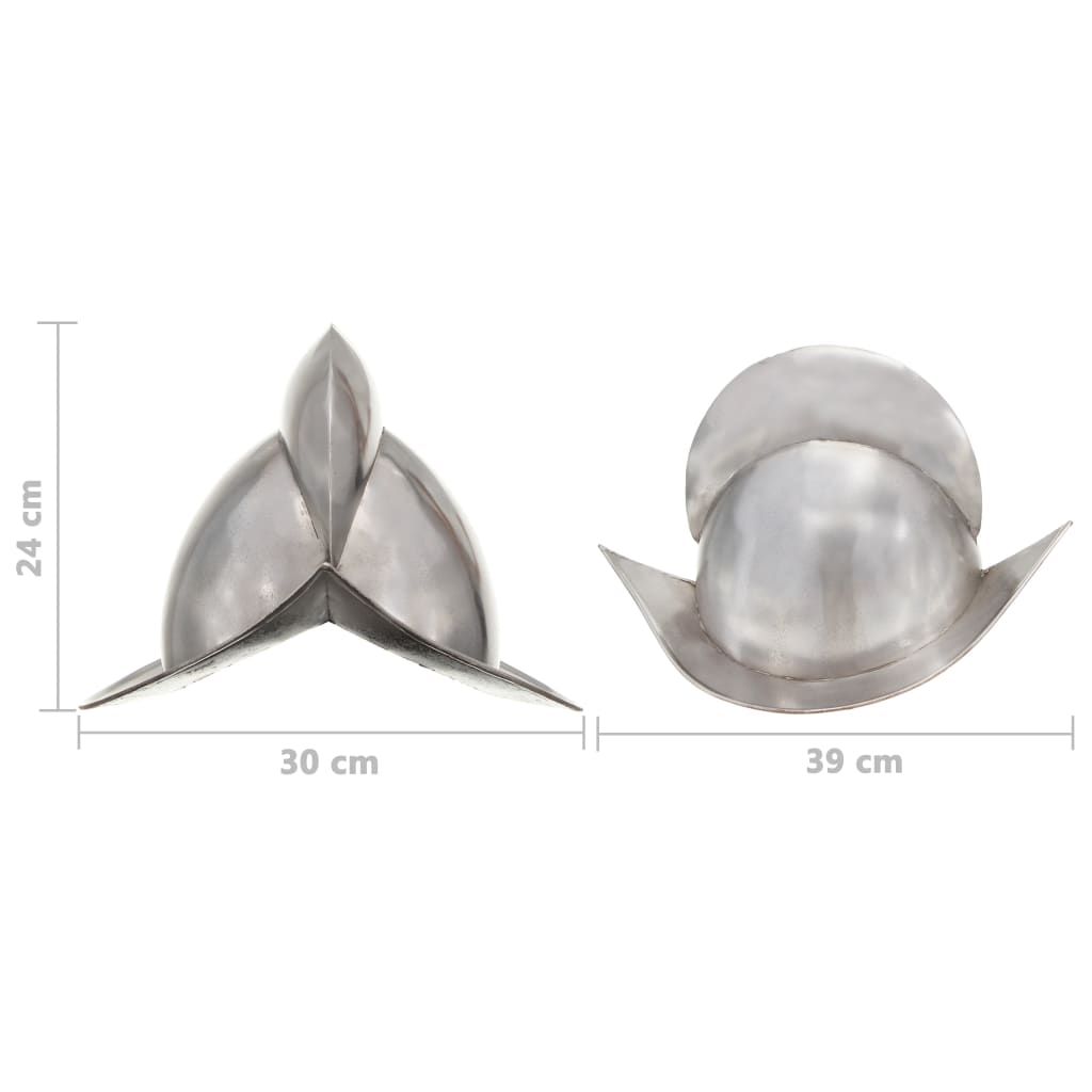 Dieser Helm in Antik-Optik eignet sich hervorragend für LARP (Live-Action-Rollenspiel), Cosplay, Partys mit historischem Thema, Halloween-Party, Theaterrequisiten und historische Nachstellungen (Reenactments). Der Rüstungshelm ist eine exakte Nachbildung eines original mittelalterlichen Helms. Es ist auch der typische Lansquenet-Helm. Gefertigt aus poliertem Stahl der Stärke 18, kombiniert er antiken Stil und robustes Material zu einem eindrucksvollen Helm, der perfekt zu Ihrer Krieger-Rüstung passt. Der Helm wird heute noch in ähnlicher Form in der Vatikanstadt verwendet. Darüber hinaus ist es auch ein attraktives Ausstellungsstück.