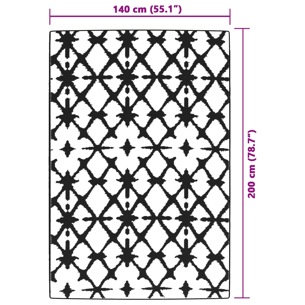 Dieser trendige Outdoor-Teppich ist eine großartige dekorative Ergänzung zu Ihrem Außenbereich! Platzieren Sie diesen Außenteppich in Ihre Sitzecke auf dem Balkon, auf der Terrasse und im Innenhof, damit Sie sich sofort heimisch fühlen. Langlebig und UV-beständig: Dieser Teppich besteht aus Polypropylen (PP) und ist eng gewebt, was ihn strapazierfähig und pflegeleicht macht. Außerdem ist er leicht also tragbar und UV-beständig, was verhindert, dass es verblasst oder andere Sonnenschäden davonträgt.Beidseitig: Dieser Gartenteppich ist beidseitig verwendbar und bietet zwei Optionen, damit du das Dekor nach deinem Geschmack genießen kannst. Wenn eine Seite einen Fleck hat oder dir das Muster zu langweilig wird, kannst du den Teppich auf die andere Seite wenden, um deinem Fußboden ein neues Aussehen zu geben.Einfache Reinigung: Dieser Outdoor-Teppich ist leicht zu reinigen. Schüttle es einfach aus, wische es mit einem feuchten Tuch ab oder spüle es mit einem Schlauch ab und lass ihn an der Luft trocknen.Tragbar und leicht zu verstauen: Dank des geringen Gewichts und der Nähte in der Mitte kannst du den Teppich in die gewünschte Form falten, sodass du ihn leicht tragen und verstauen kannst.Breite Anwendungen: Dieser Teppich ist für den Innen- und Außenbereich geeignet, einschließlich Terrasse, Garten, Balkon usw. Gut zu wissen:Für optimale Haltbarkeit und Schönheit empfehlen wir, deinen Outdoor-Teppich bei Raumtemperatur von Hand zu waschen.