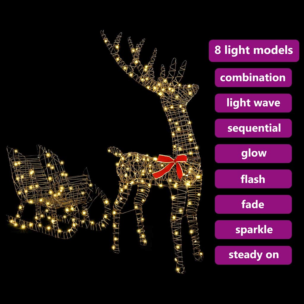 Dieser Rentier-Zugschlitten ist die perfekte Ergänzung für jede feierliche Umgebung. Er kombiniert modernes Design mit dem zeitlosen Charme von Weihnachten. Für alle, die den Weihnachtszauber lieben, bringt dieses auffällige Deko-Element Charakter und Wärme in jedes Zimmer, sei es Wohnzimmer, Flur oder Garten. Mit einem niedlichen Rentier, das einen Schlitten zieht, fängt es die Freude und Staunen der Feiertage perfekt ein. Die warm-weißen LED-Lichter strahlen sanft und harmonieren sowohl drinnen als auch draußen, während sie gleichzeitig Eleganz und festliche Stimmung zeigen. Ihr schlanker, moderner Stil ergänzt verschiedene Feiertagsthemen und bringt dabei einen zeitgemäßen Twist. Top Qualität: Mit flexiblen LED-Lichtern sorgt dieser Rentierschlitten für eine gemütliche Atmosphäre. Der warm-weiße Lichtton macht es perfekt für einladende Innenräume oder um Außendekorationen zu verschönern. Praktischer USB-Anschluss: Dank des eingebauten USB-Anschlusses ist die Stromversorgung dieser Figur einfach und flexibel. Damit kannst du sie nahe einer Steckdose oder einem anderen Ort platzieren, so wie es für dich am besten passt. Stylisches Design: Ihr modernes Design mit klaren Linien fügt sich spielend leicht in jede zeitgenössische Umgebung ein. Es kombiniert den traditionellen Feiertagscharme mit einem modernen Look. Platzsparend: Mit 54 x 19 x 120 cm passt sie super in verschiedene Bereiche, ohne überladen zu wirken, perfekt für alle, die den Platz optimal nutzen möchten. DIY-freundlich: Bastler werden die Möglichkeit lieben, diese Deko selbst zusammenzubauen und so eine persönliche Note in die Ausgestaltung zu bringen. Alle notwendigen Teile für einen reibungslosen Aufbau sind enthalten.