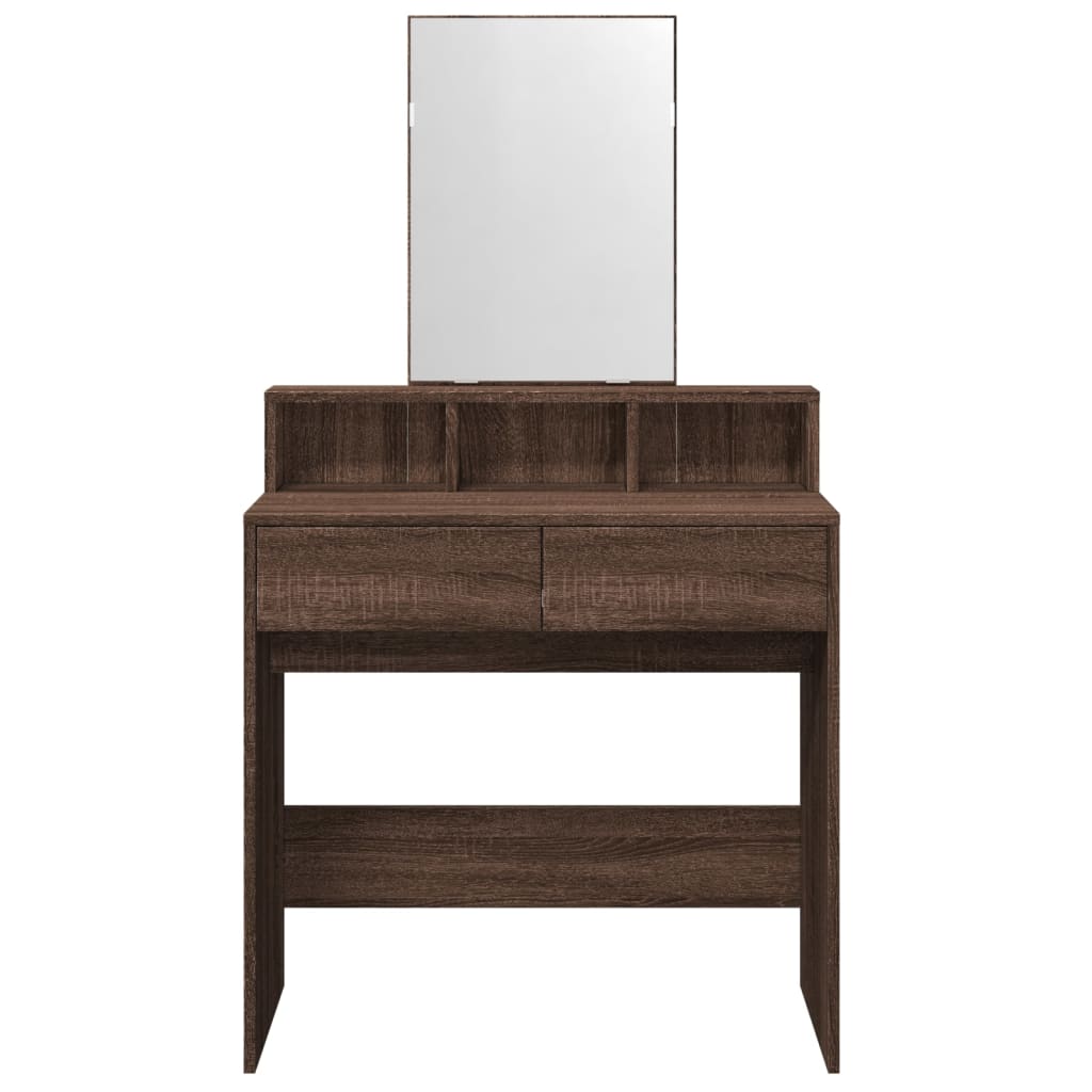 Dieser Schminktisch ist eine großartige Ergänzung zu deinem Schlafzimmer und bietet auch Platz zur griffbereiten Aufbewahrung deiner Kosmetika! Starkes und langlebiges Material: Holzwerkstoff ist ein langlebiges und robustes Material mit einer glatten Oberfläche, das gegen Feuchtigkeit, Verformung und Rissbildung beständig ist, wodurch es eine zuverlässigen Wahl für die Herstellung von Möbeln ist.Viel Stauraum: Der Schminktisch mit 2 Schubladen und 3 Fächern bietet viel Platz, um verschiedene Alltagssachen gut organisiert und in Reichweite aufzubewahren.Allzweckspiegel: Der schöne Spiegel bietet eine klare Sicht beim Auftragen von Make-up und verleiht dem Schminktisch eine elegante Note. Achtung:Um ein Umkippen zu vermeiden, sollte dieses Produkt mit der mitgelieferten Wandhalterung gesichert werden.