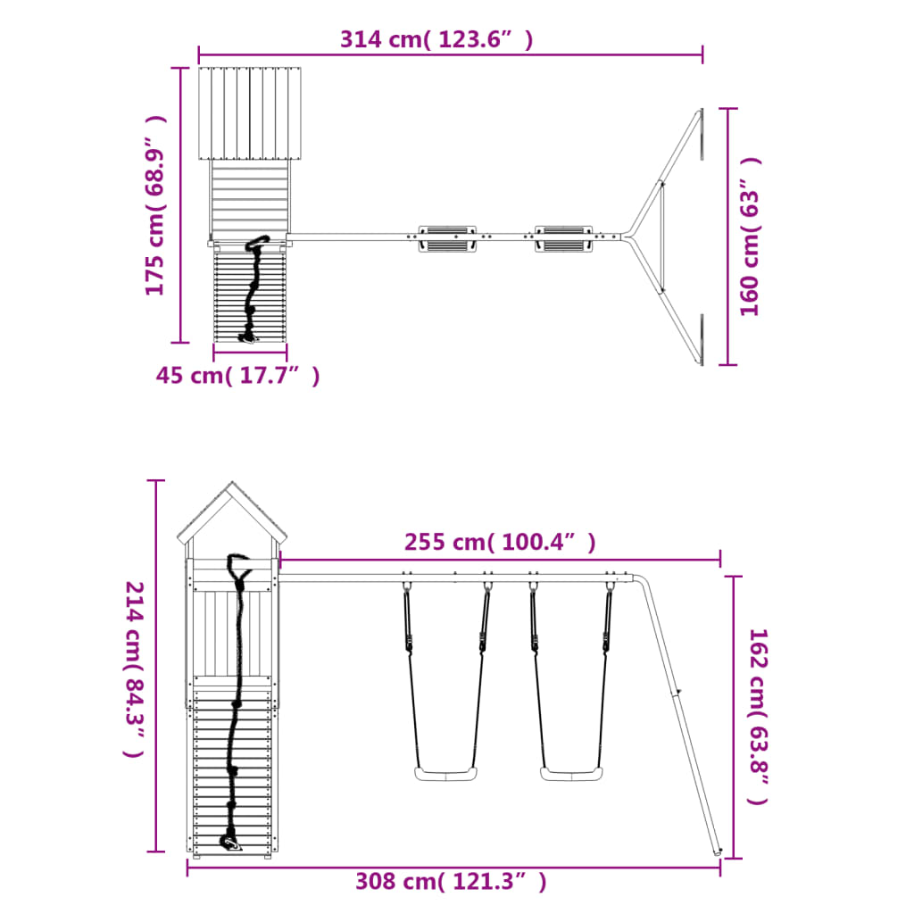Möchtest du deinen Kindern ihren eigenen Spielplatz schenken? Dieser Spielplatz aus Holz ermöglicht fantasievolle Abenteuer im eigenen Garten! Kesseldruckimprägniertes Holz: Dieses Garten-Klettergerüst ist aus kesseldruckimprägniertem Kiefernholz gefertigt. Kiefer-Massivholz ist ein schönes Naturmaterial. Kiefernholz weist eine gerade Maserung auf und die Aststellen verleihen dem Holz seine charakteristische, rustikale Optik. Die Kesseldruckimprägnierung ist ein Konservierungsverfahren, das mit Hilfe von Autoklaven durchgeführt wird. Sie erhöht die Fäulnis- und Witterungsbeständigkeit des Holzes.Robuster und stabiler Rahmen: Der Holzrahmen verleiht dem Garten-Klettergerüst Robustheit und Stabilität. Zudem gewährleistet das "A"-förmige Gestell die Stabilität der Kinderschaukel.Spielzentrum: Der Spielturm verfügt über eine 90 cm hohe Plattform, eine Kletterwand mit Seil, eine Doppelschaukel und Sandkasten. So können deine Kleinen auch ihre Freunde zum Mitspielen einladen.Durchdachtes Design: Die umlaufenden Holzgeländer gewährleisten die Sicherheit der Kinder beim Spielen. Zudem spendet das Holzdach an heißen Sommertagen Schatten.Unendlicher Spaß: Dieses lustige Spielhaus aus Holz bietet deinen Kindern und ihren Freunde die perfekte Möglichkeit, Spaß zu haben, nach Herzenslust zu spielen und tolle Erinnerungen fürs Leben zu schaffen! Achtung:Nur für den HausgebrauchFür den AußenbereichNicht geeignet für Kinder unter 3 JahrenEmpfohlenes Benutzeralter: 3-8 JahreMaximales Gewicht pro Benutzer: 45 kg Gut zu wissen:Um die Montage so einfach wie möglich zu machen, wird jedes Produkt mit einer Anleitung geliefert.