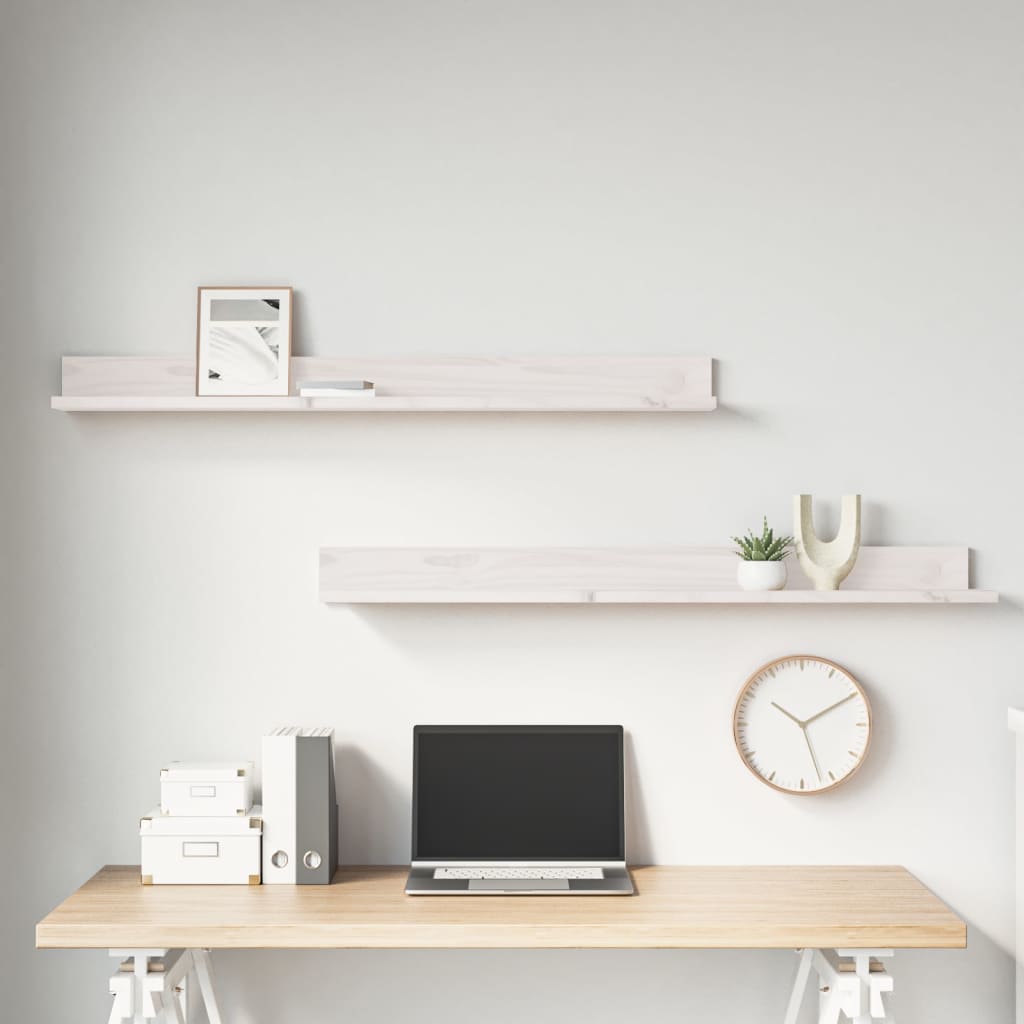Wandregale 2 Stk. Weiß 110x11x9 cm Massivholz Kiefer