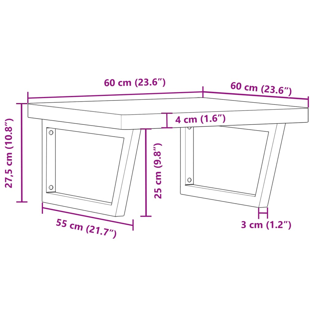 Waschbeckenregal Wandmontage Stahl und Massivholz Buche